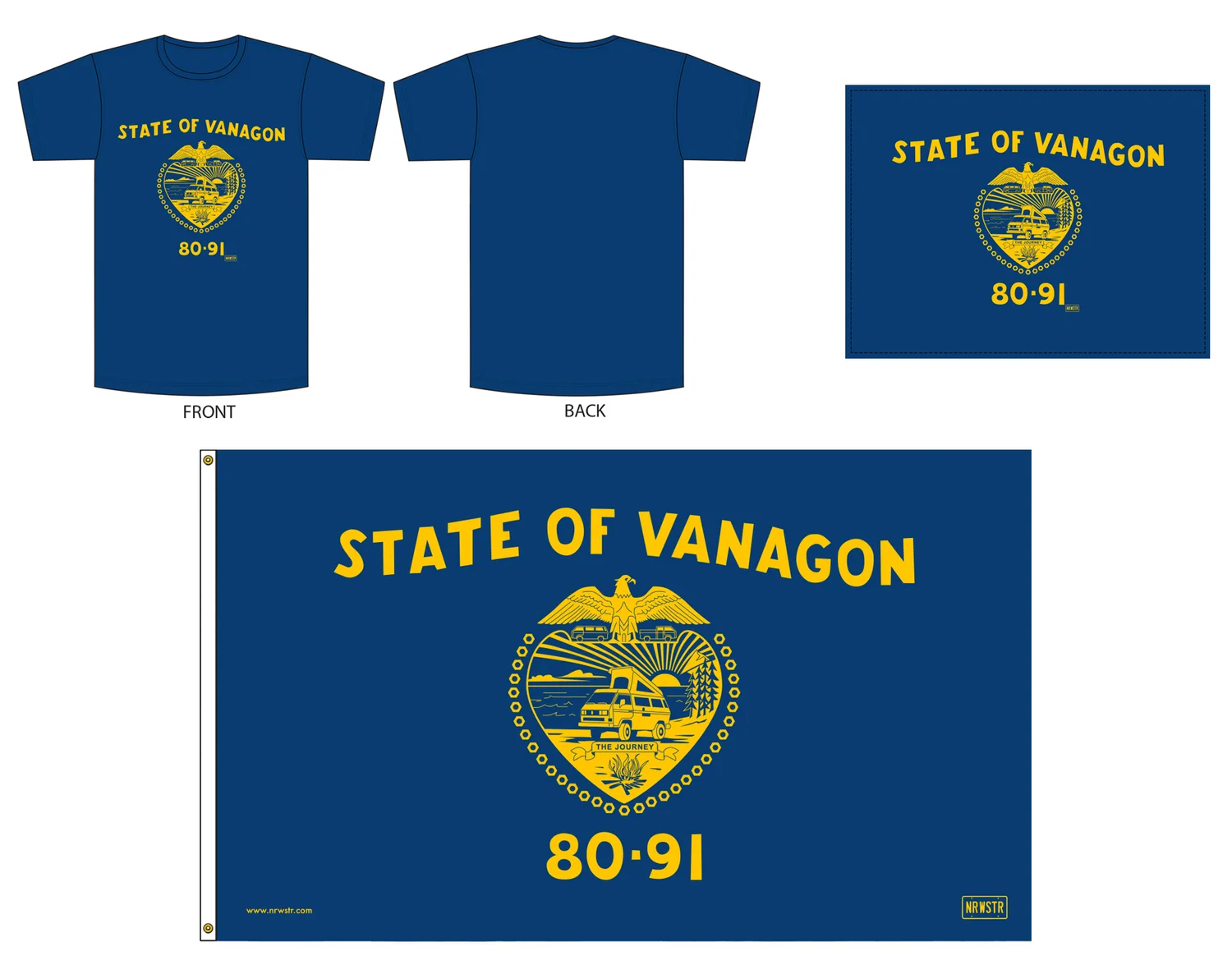 This collection was inspired by my home state flag of Oregon. The image of the pioneer wagon and NW landscape was perfect to reinterpret for the journeys we take in our Vanagons.