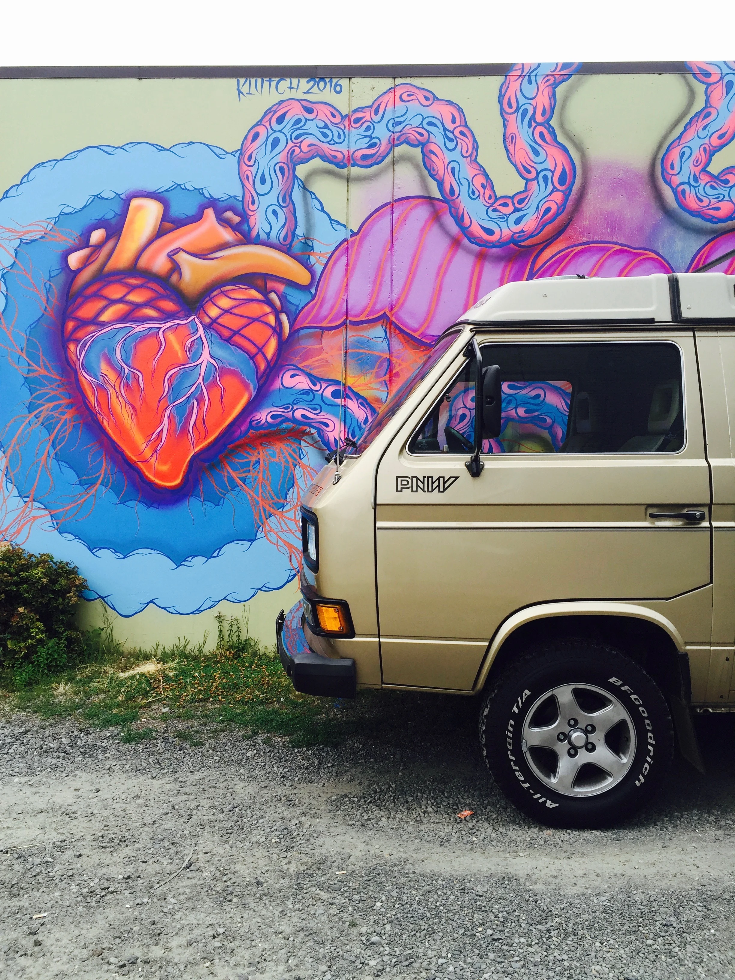 I enjoy taking photographs of my van in front of great murals and graffiti.